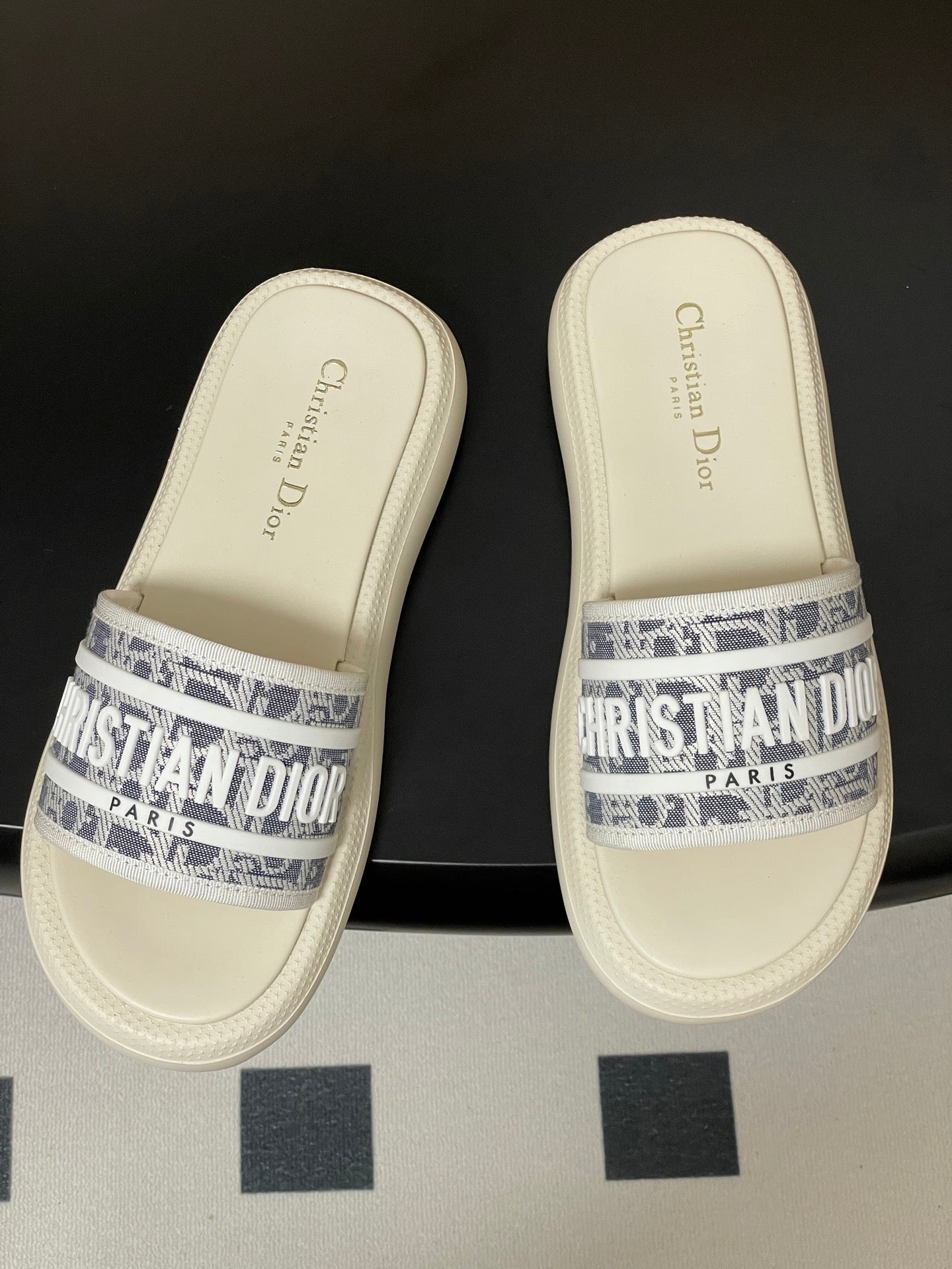 CD 25 Slippers White Gray Fabric 394062