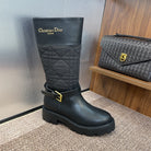 CD Ankle punk-inspired women's boots black cowhide with nylon cloth