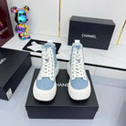 Chanel 2025 High-Top Sneakers Light Blue White Cowhide Denim Frabic 469797