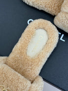 Chanel 25 Buckle Flip-up Thick-soled Slippers Beige Wool 465382