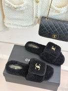 Chanel 25 Buckle Flip-up Thick-soled Slippers Black Wool 465380