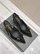 Chanel 25A Slingback Black Patent Calfskin 393073