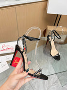 CL So Me 105 mm Strappy Sandals Black Imported Rivets with Sheepskin 251021