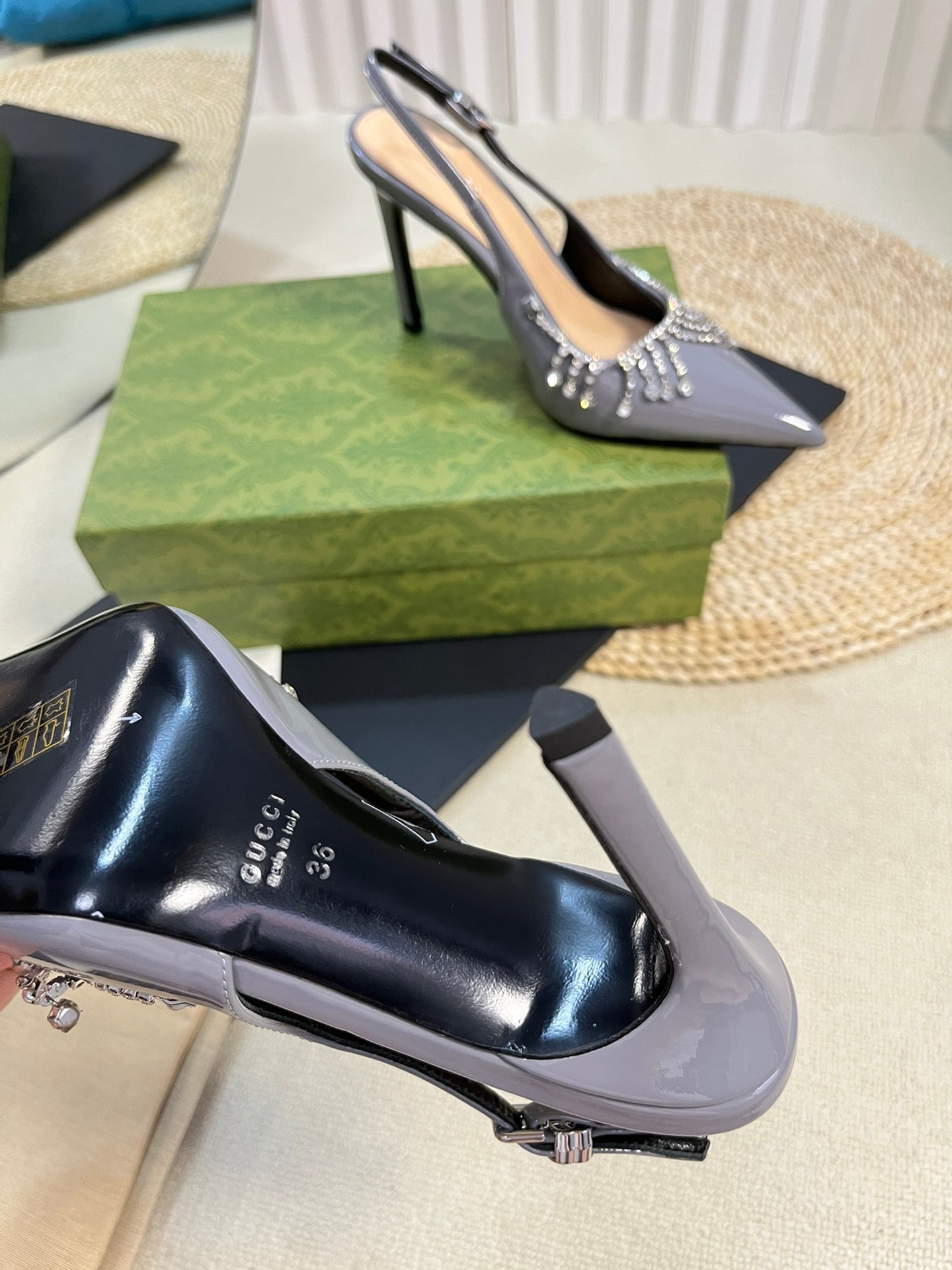 GC Embellished Slingback Dark Gray Patent Leather 294623