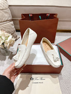 LP Dot sole walk mocassinown White Wrinkled Cowhide 215008