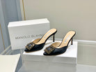 Manolo Buckle Mules 7cm Black Silk 208022