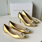 Manolo Diamond Buckle Pumps Gold Mirror Cowhide 451182