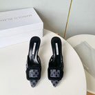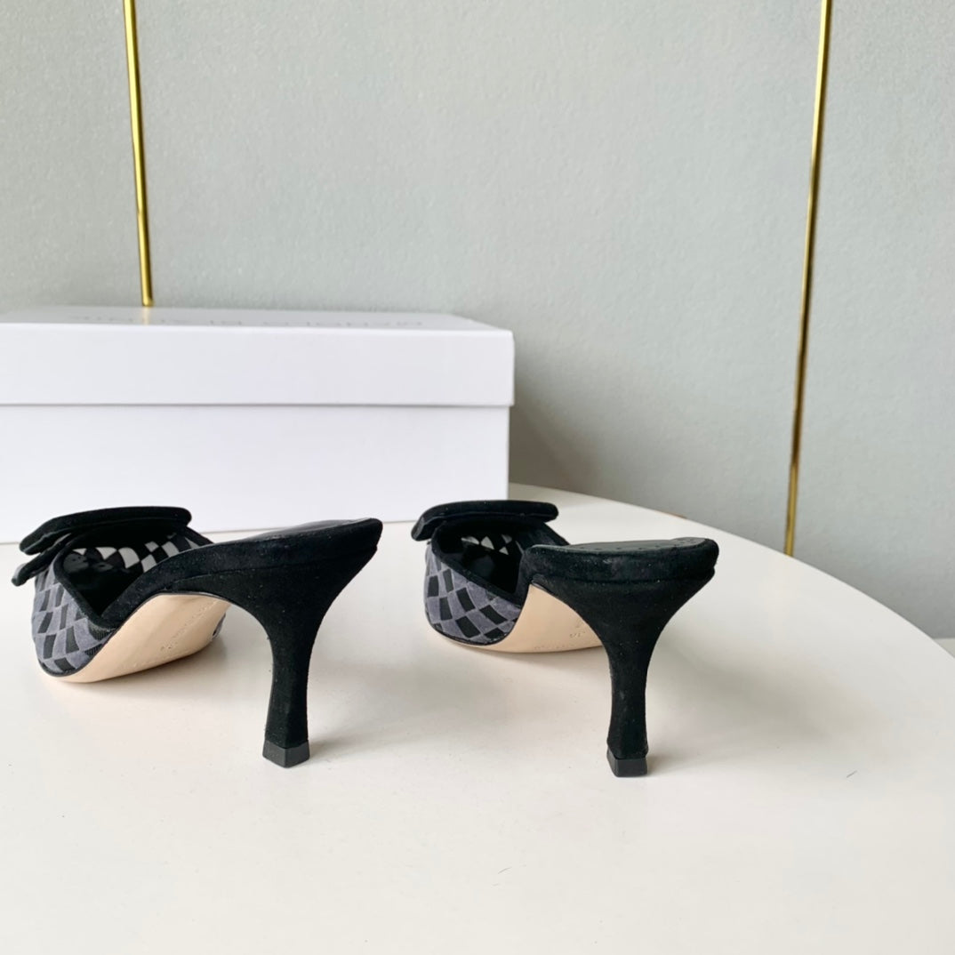 Manolo Mules Latest Checkerboard Grey Fabric Leather 528009