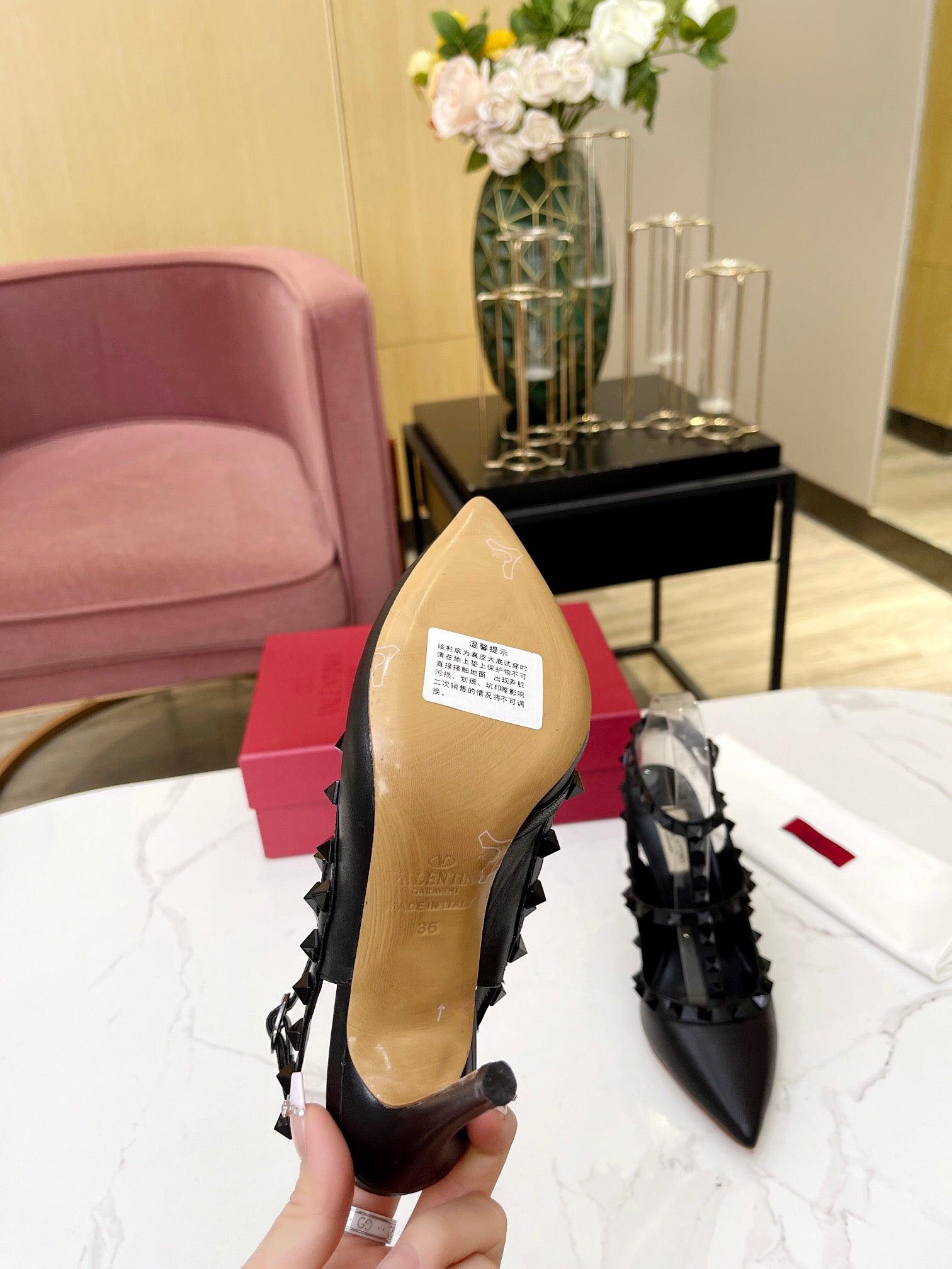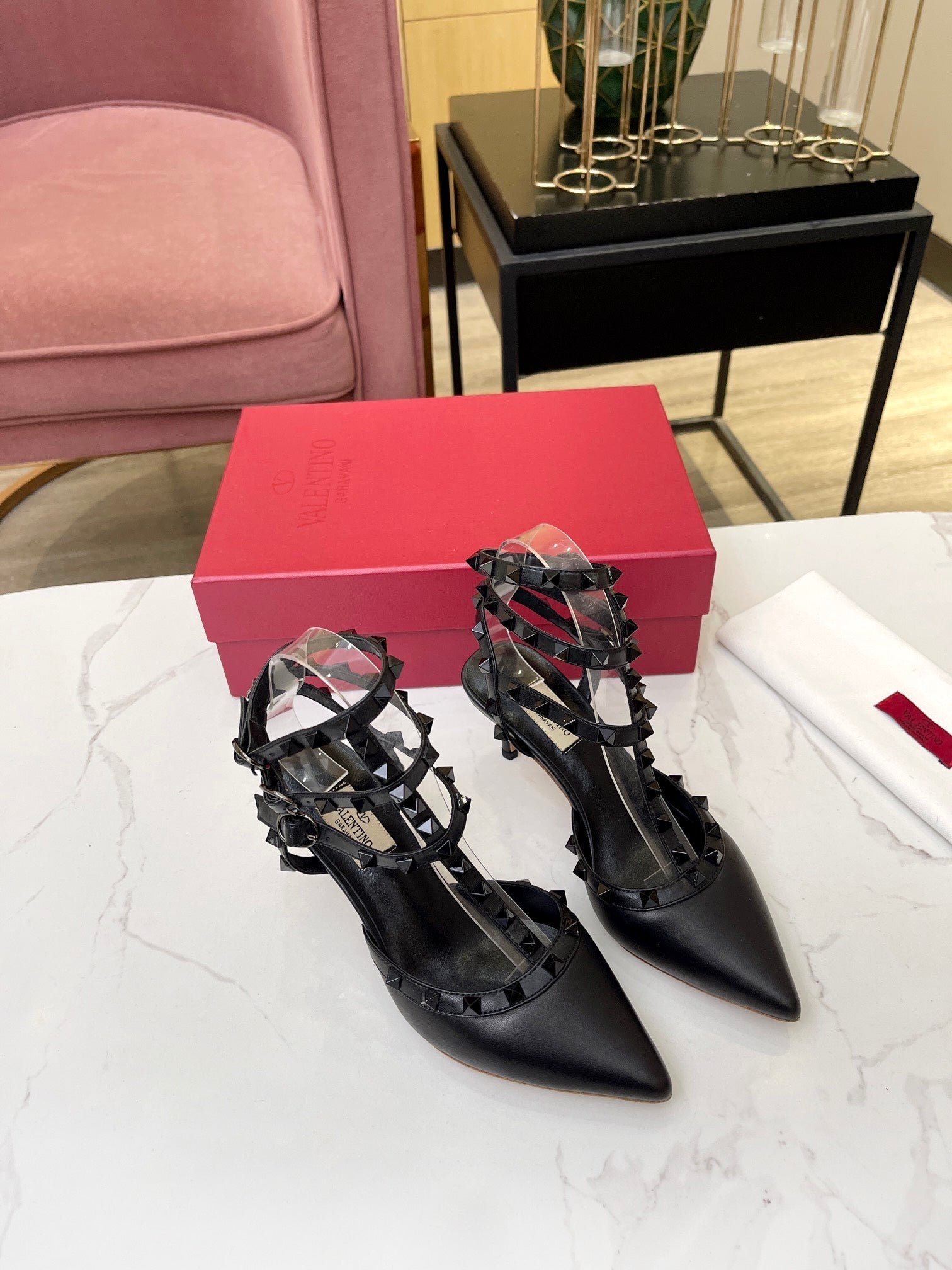 Valentino Rockstud Caged Pumps 95mm Black Beige Leather