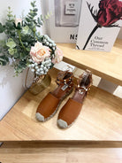 Valentino Rockstud Espadrille Sandals Brown Leather 240599