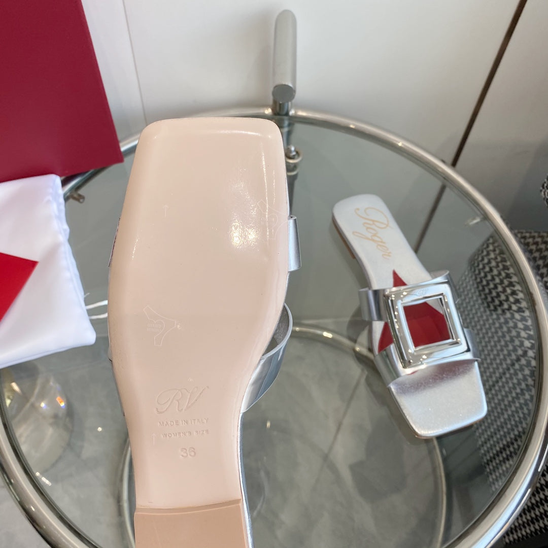 Viv Love Heart Slippers Silver Fetal Cowhide 255202