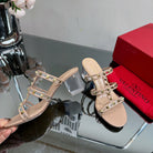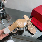 VT 25 Rockstud Sandals 65mm Beige PVC Sheepskin