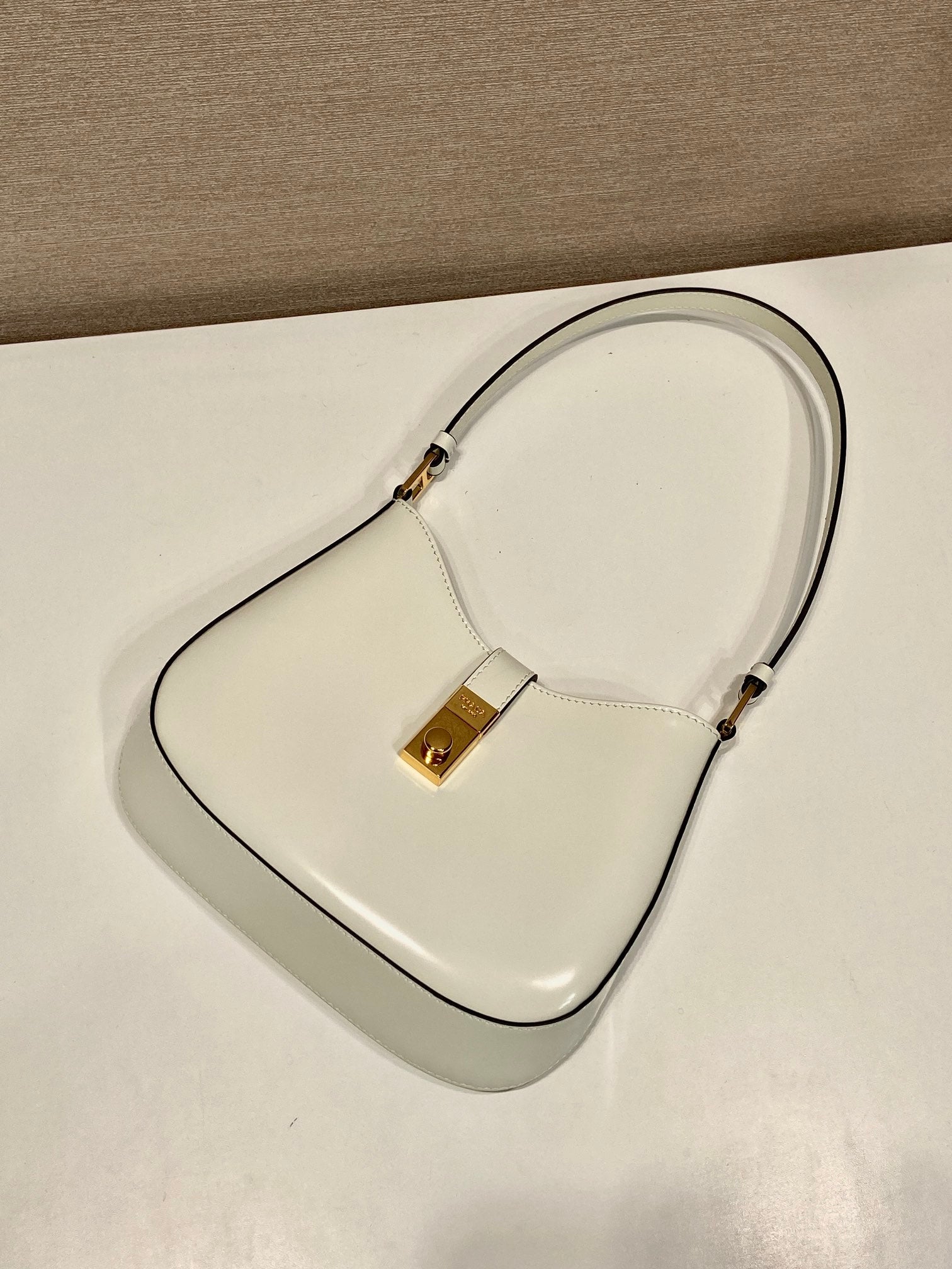 CLEO SHOULDER BAG 22 IN WHITE BRUSHED LAMBSKIN WITH CLASP CLOSURE