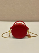 MINI ROUND BAG 8 IN RED GLOSSY CALFSKIN GOLD HARDWARE