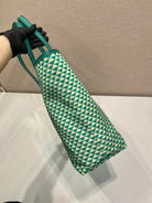 TOTE BAG 33 IN FOREST GREEN MIX CREAM TRIANGLE PATTERN EMBROIDERED FABRIC