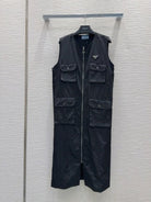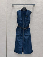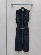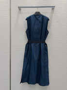 Prada 2025 Sleeveless Zipper Dresses Blue and Black Poliamide
