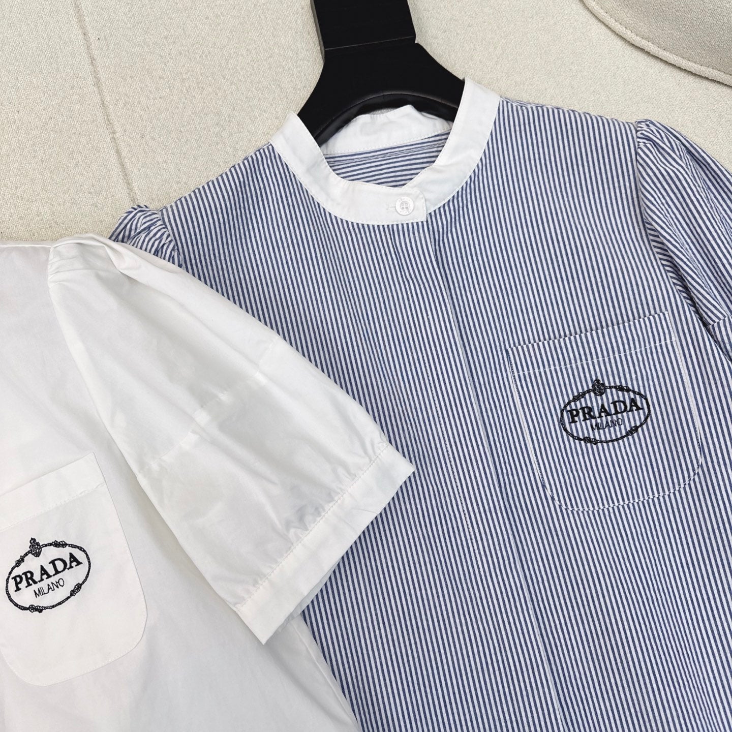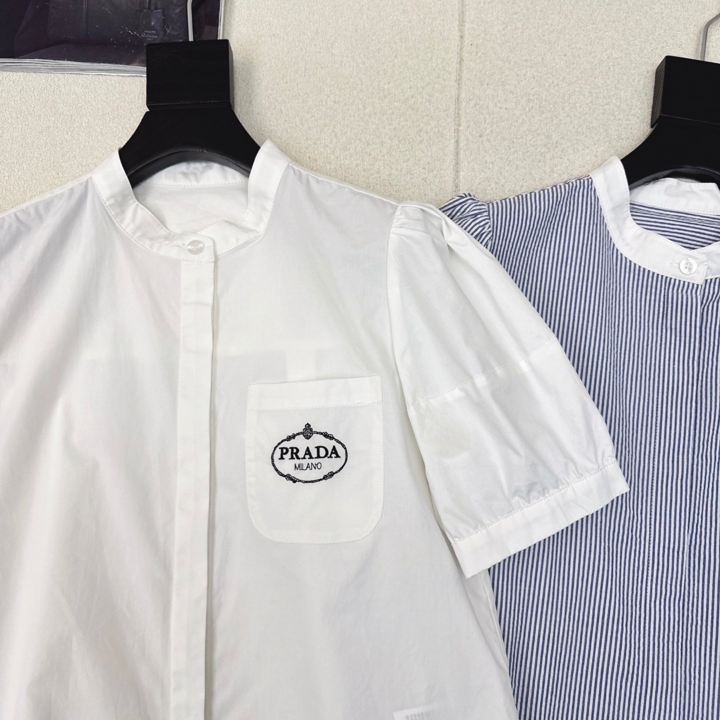 Prada 25 Logo Embroidery Shirt Cotton 614592