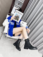 LACE-UP ANKLE BOOTS IN BLACK DENIM AND SHEEPSKIN LINING
