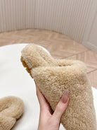 MULES ATTACHED TRIANGLE LOGO IN BEIGE SHEARLING