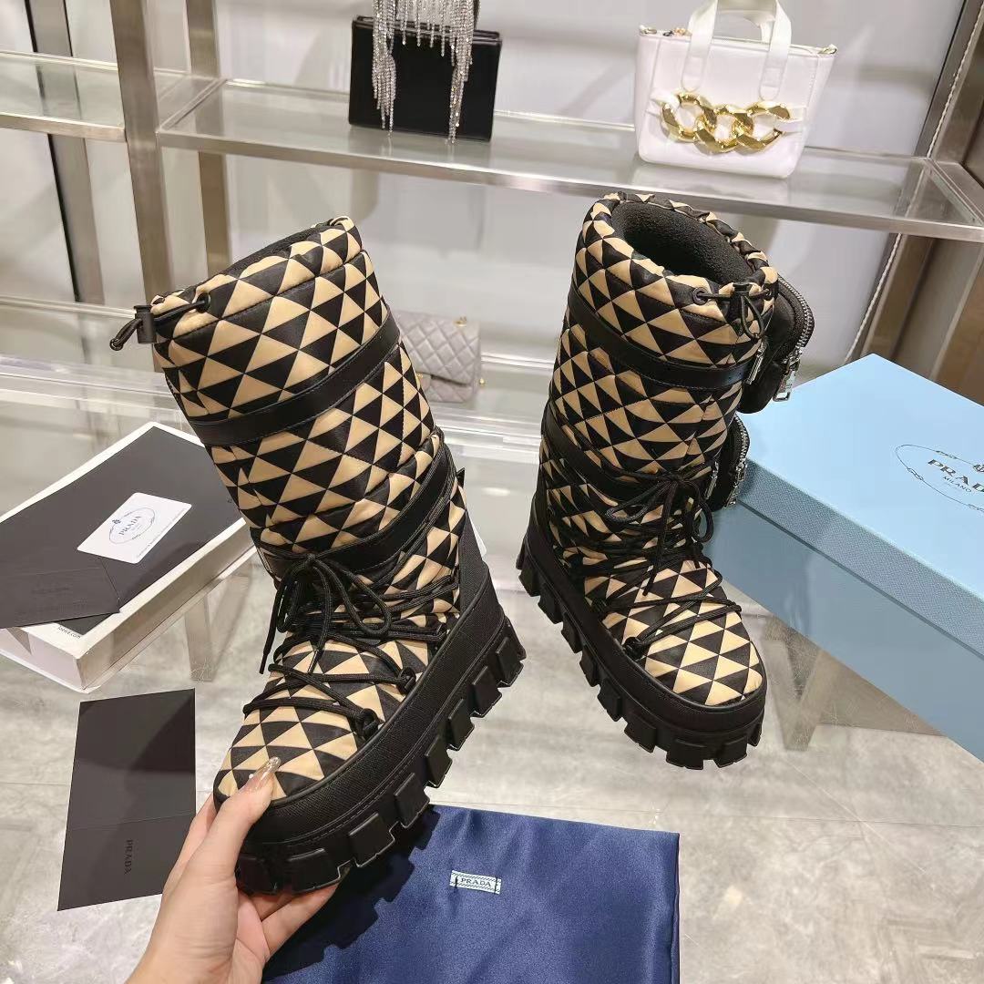 RE-NYLON SKI BOOTS BLACK AND BEIGE ATTACHED POUCH