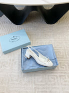 TRIANGLE LOGO SLINGBACK PUMPS WITH BOW IN WHITE CALFSKIN