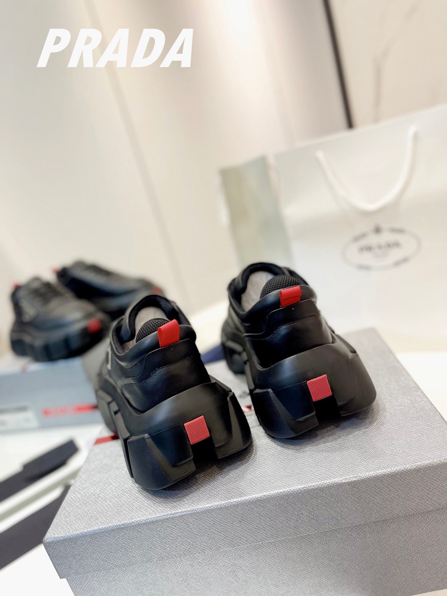 PRA BRUSHED THICK-SOLE SNEAKERS BLACK CALFSKIN