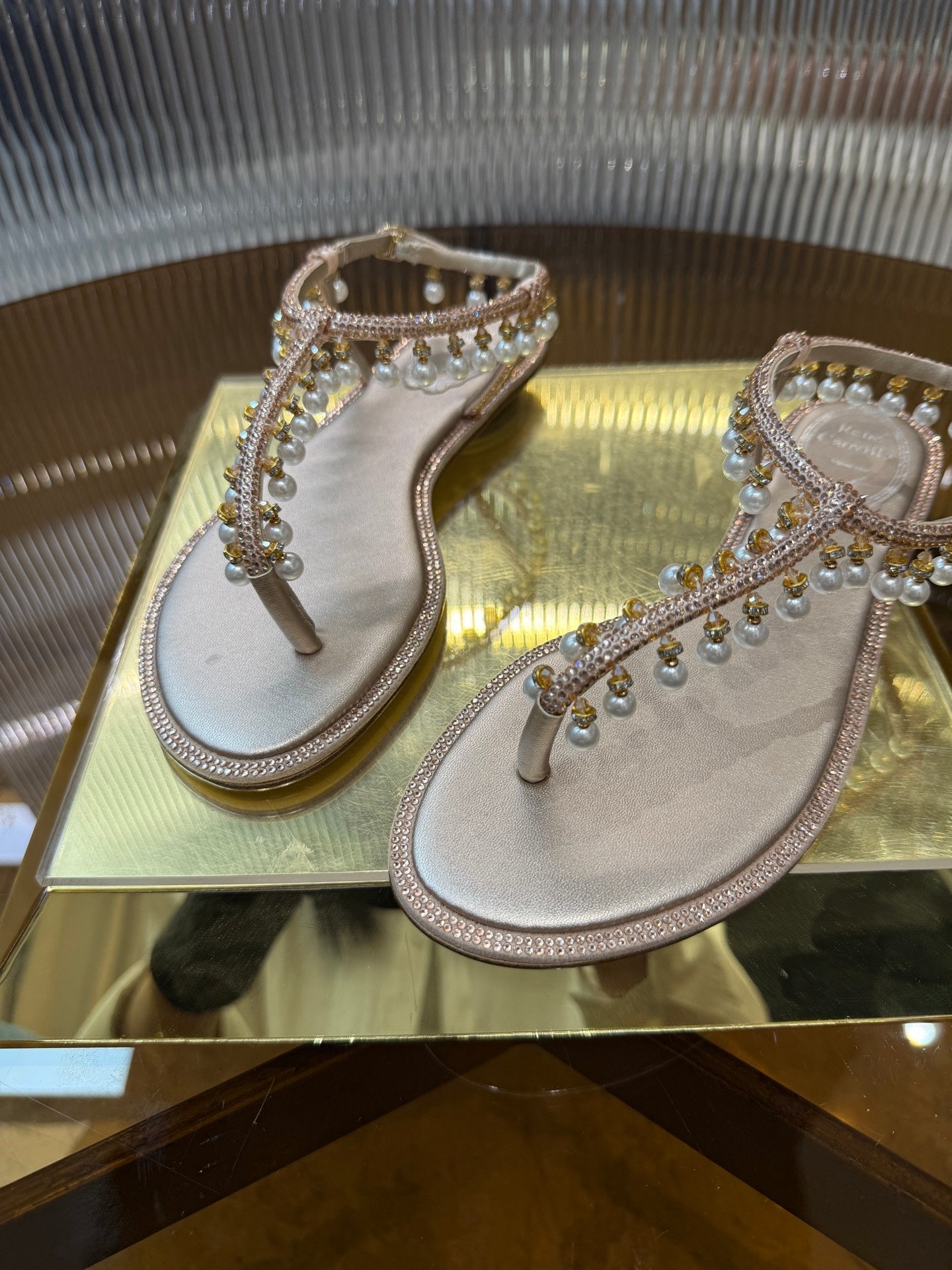 RC 25C Thong Diamond Flat Sandals Pink Silk Rhinestone 275774