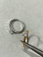 1. Using a length of string or ribbon, wrap it around the base of your finger. To ensure the ring fits comfortably, we suggest measuring your knuckle as well. We recommend selecting a size that will slide on and off your finger easily.