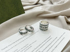 1. Using a length of string or ribbon, wrap it around the base of your finger. To ensure the ring fits comfortably, we suggest measuring your knuckle as well. We recommend selecting a size that will slide on and off your finger easily.