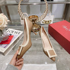 Belle Viv Metal Buckle Pumps 85 Camel Patent Leather