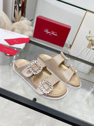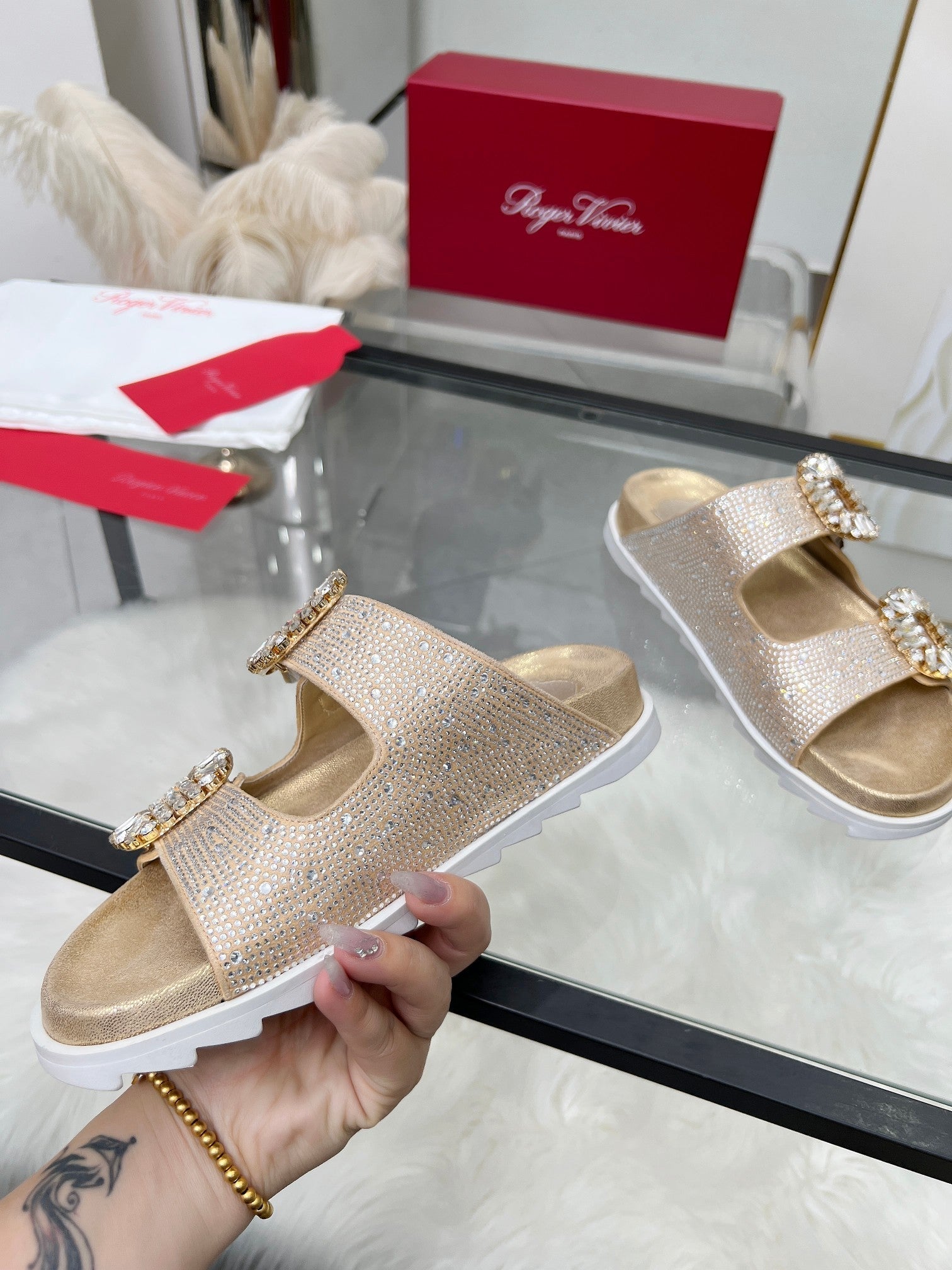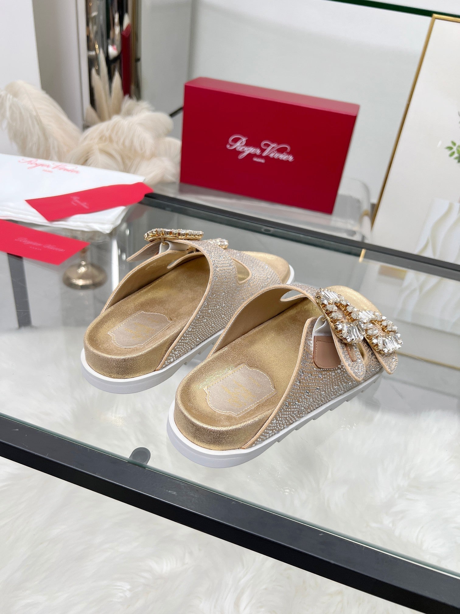 Viv 25 Slidy Diamond Slippers Gold PVC Silk Cowhide 259286