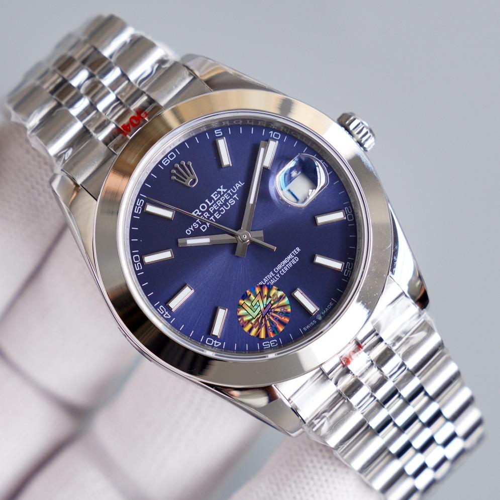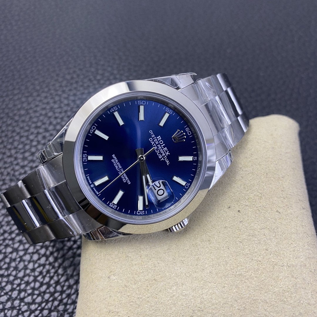 DATEJUST 41MM SMOOTH BEZEL BLUE DIAL OYSTER BRACELET