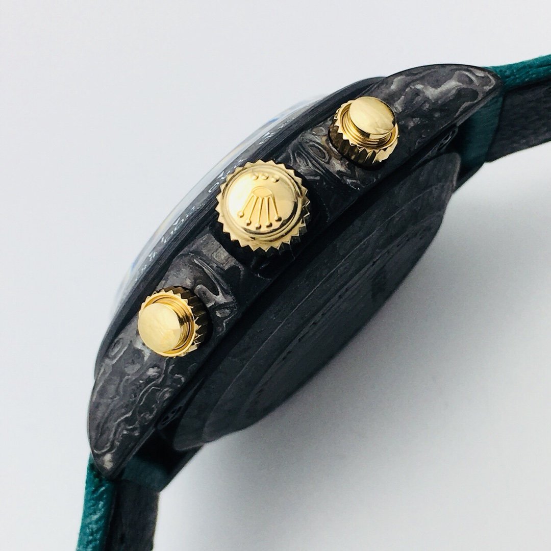 DAYTONA 40MM CUSTOM CARBON FILBER BLACK DIAL NAVY LEATHER