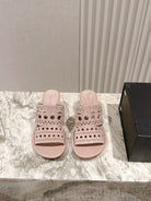 Alaia 2025 Vienne Cutout Kitten-Heel Slide Sandals Pink Leather 293651