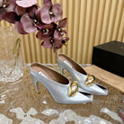 ALAIA AZZEDINE HIGH HEELS IN SILVER CALFSKIN WITH GOLD HARDWARE