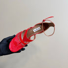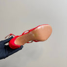 Alaia Fishnet Thong Heels Sandals Red Lambskin 299660