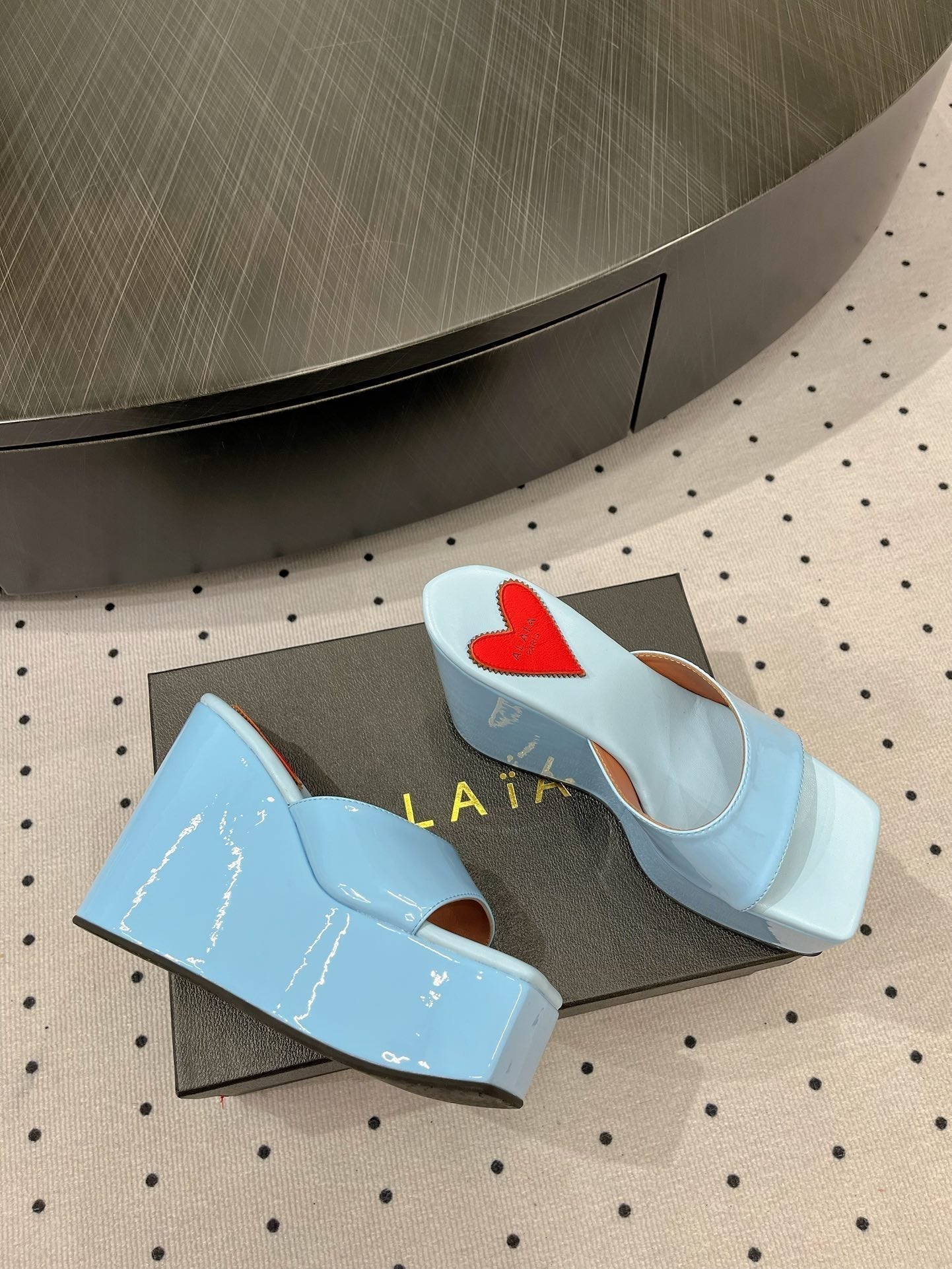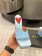 Alaila High Sandal 115mm In Could Blue Glossy Lambskin 954868