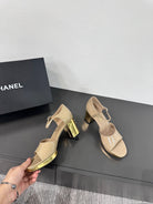 BLOCK HEEL SANDALS BEIGE SHEEPSKIN