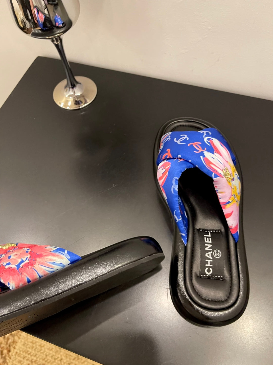 CC 25 Platform Slide Blue Cloth Sheepskin 334741