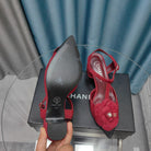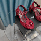 CC CAMELLIA SANDAL IN CHERRY RED SUEDE AND BLACK CALFSKIN WITH FLOWER