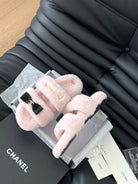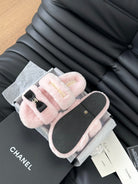 CC DAD SANDAL MULE IN PASTEL PINK FLEECE WITH GOLD HARDWARE