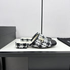 CC FLAT MULE IN WHITE MIX BLACK WOOL TWEED AND CALFSKIN