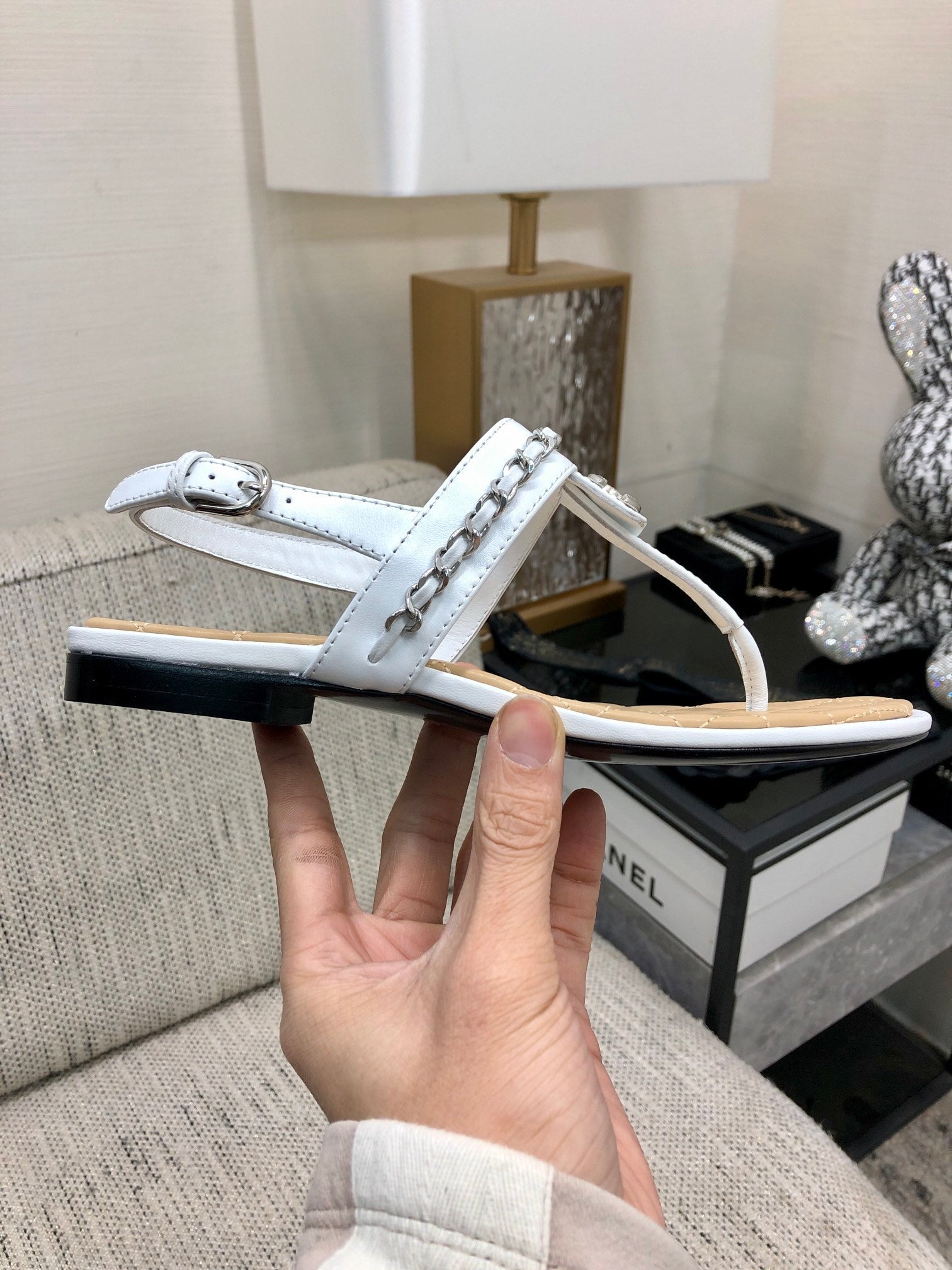 cc sandal white beige quilted lambskin