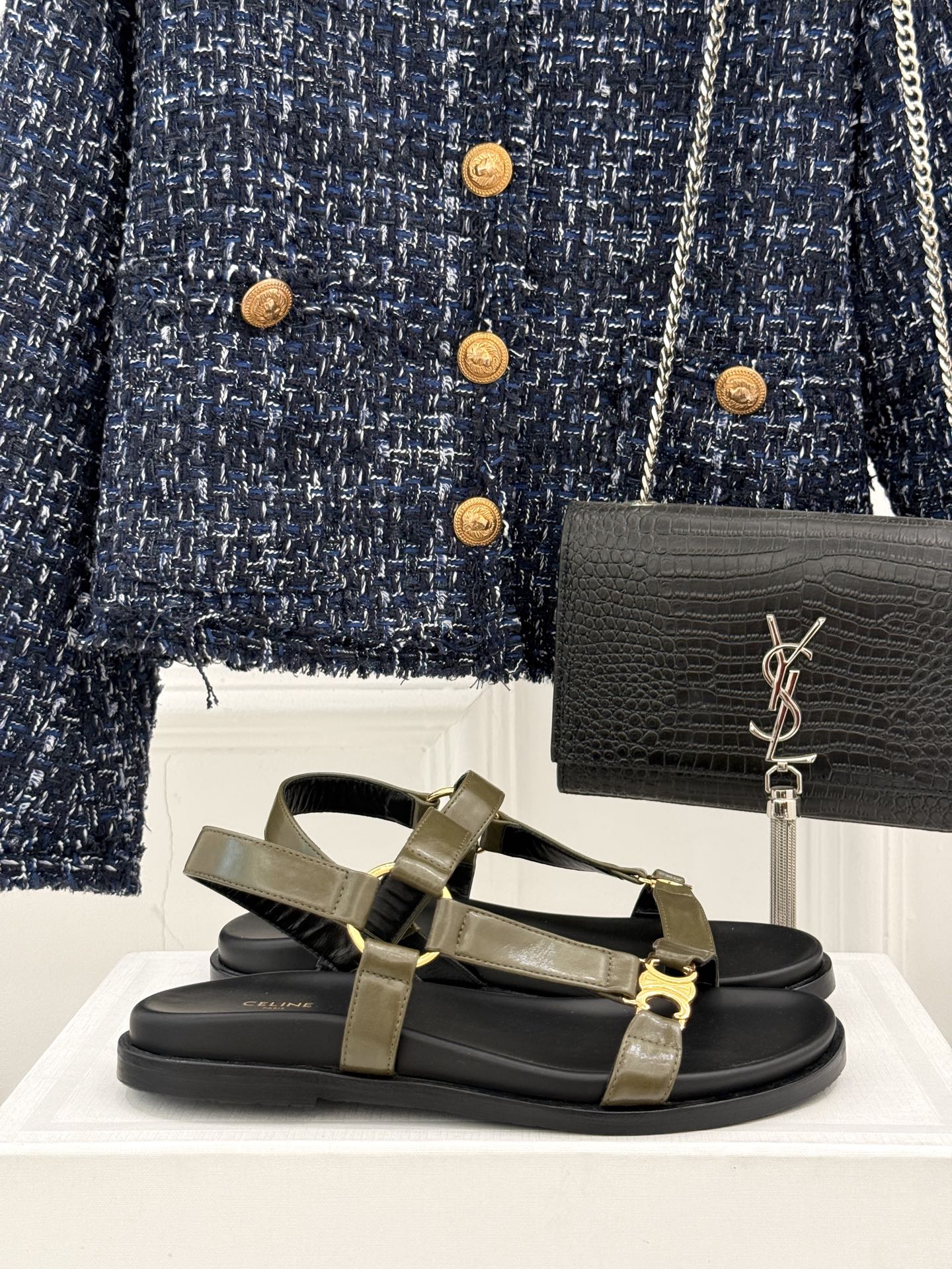CELINE Maud Sandal Moss Green Leather 285902