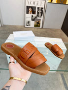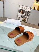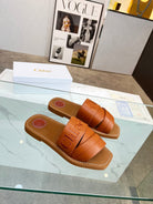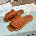 CHLOÉ WOODY MULE IN BRONZE BROWM LAMBSKIN WITH EMBROIDERED LOGO