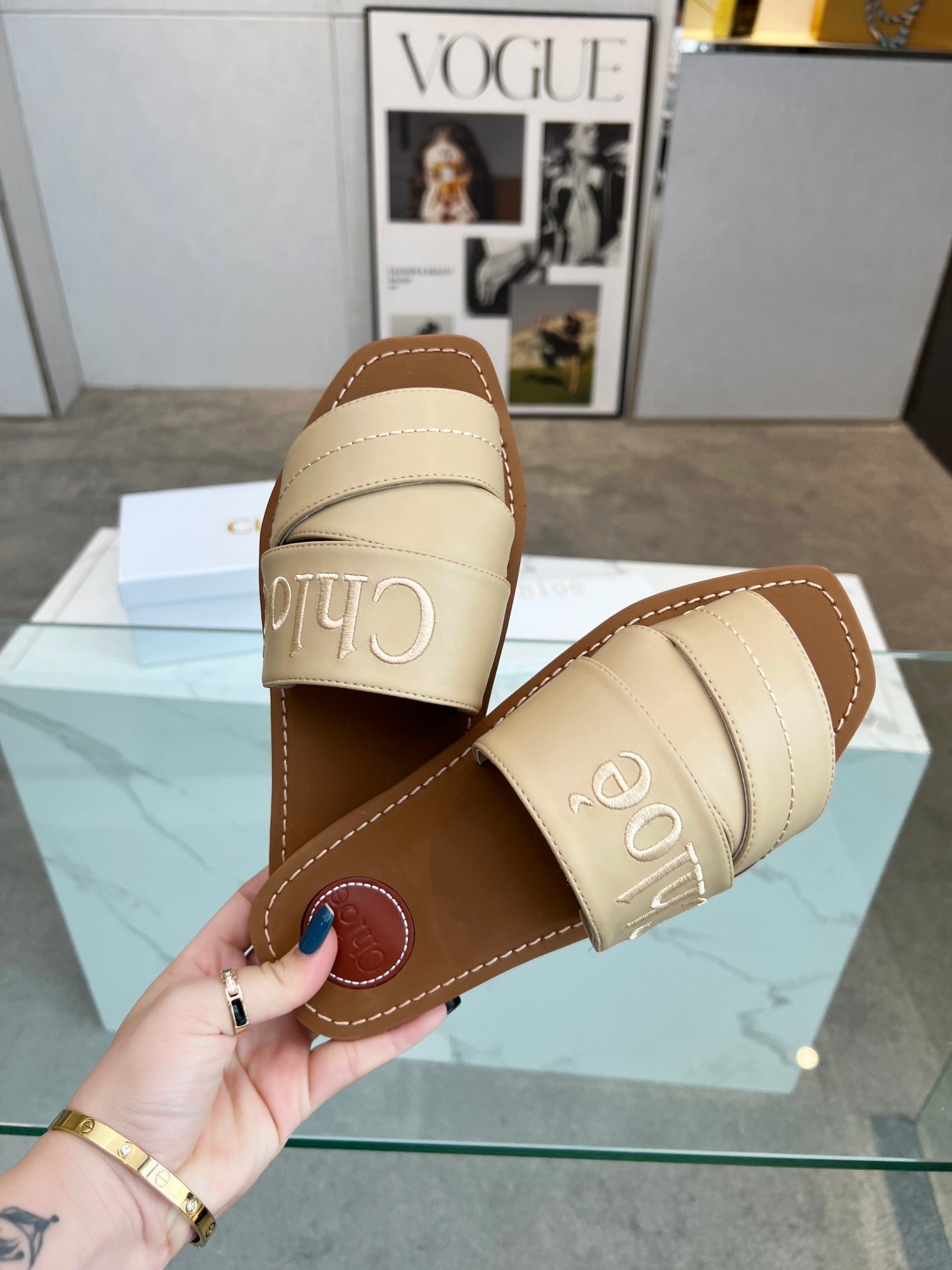 CHLOÉ WOODY MULE IN TUSCAN BEIGE LAMBSKIN WITH EMBROIDERED LOGO