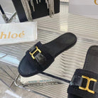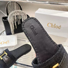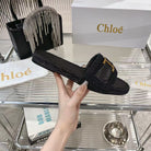 CHLOÉ WOVEN SLIPPER IN BLACK WOOL AND LAMBSKIN GOLD HARDWARE