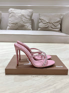 CL 25 Cross-Strap Slippers Pink Gloss Calf Patent Leather Rivets 314922
