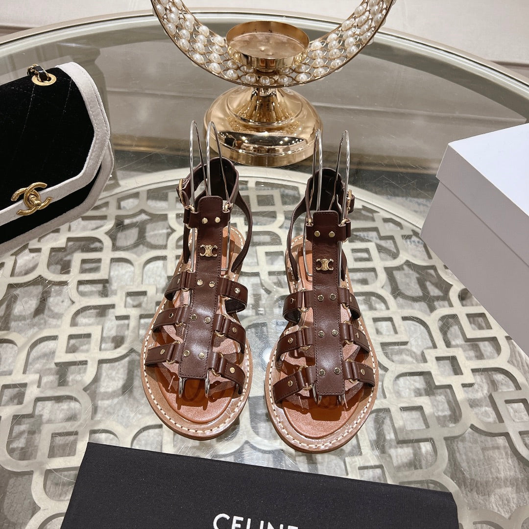 CLEA TRIOMPHE GLADIATOR SANDAL IN CHOCOLATE BROWN CALFSKIN - VEGETAL TANNING