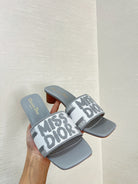 dway heeled slide 35 grey embroidered cotton